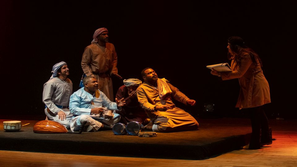 The title of the theatrical show "Samra" is derived from the singing usually performed by a musical group that relies on the lute, violin and rhythms in the Gulf region, where it is called a ‘’Jalsa’’ or ‘’Samra’’.